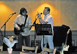 “Pilgrim” became the working title of a music project that Scott Key and Ritchie Miller embarked on last September—Scott being a young, full-of-energy missionary from Orange County, CA, and Ritchie being a tired middle-aged old cynic whose main ministry was that of Acts 2vs 17: “Your Old Men shall dream dreams.” (This is a ministry I seek to fulfil at almost any time of day, no matter what company I'm in.)